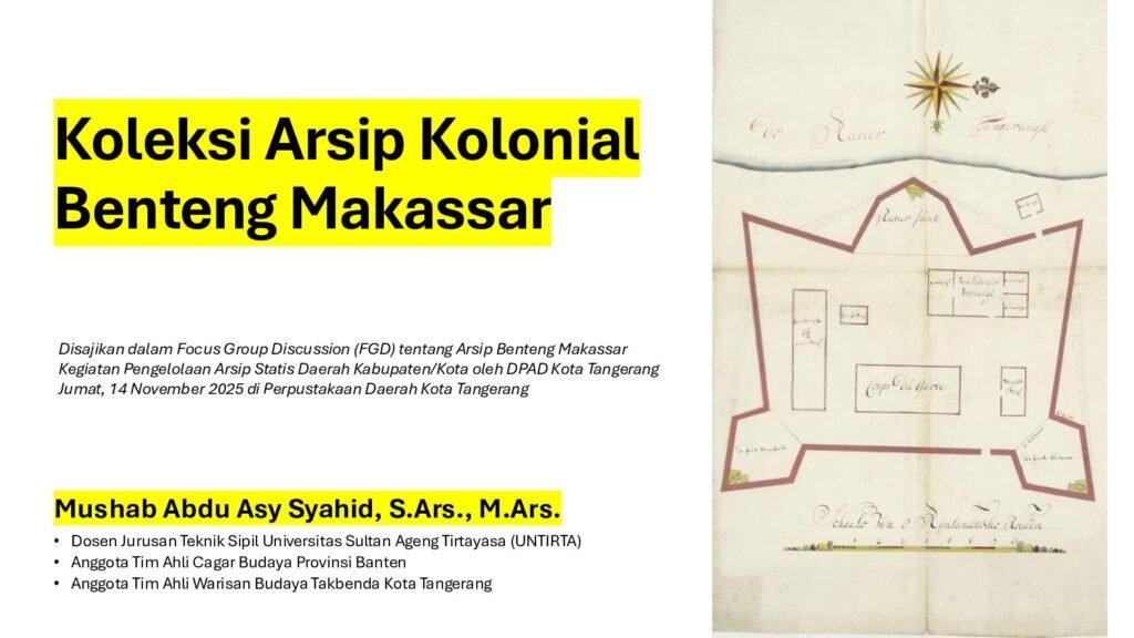 Info Massa – Pemerintah Kota (Pemkot) Tangerang melalui Dinas Perpustakaan dan Arsip Daerah (DPAD) mulai melakukan pendalaman arsip sejarah terkait keberadaan Benteng Makassar, salah satu situs kolonial paling tua di Tangerang yang jejaknya berakar pada abad ke-17.